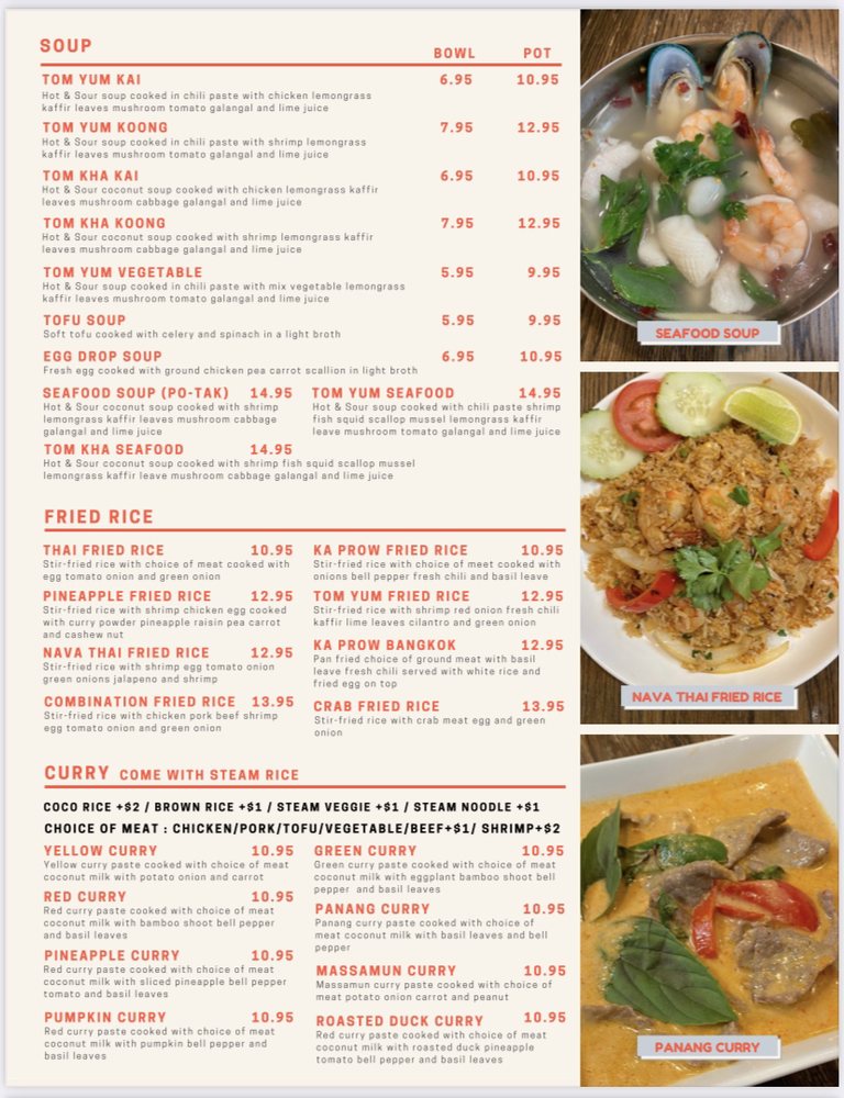 From their cozy, casual setting to friendly service, Nava Thai Cuisine creates a welcoming atmosphere for groups and special occasions. Enjoy the convenience of takeout and delivery, or savor your meal in their outdoor seating area. Nava Thai truly represents comfort food done right, making every visit a delightful experience.